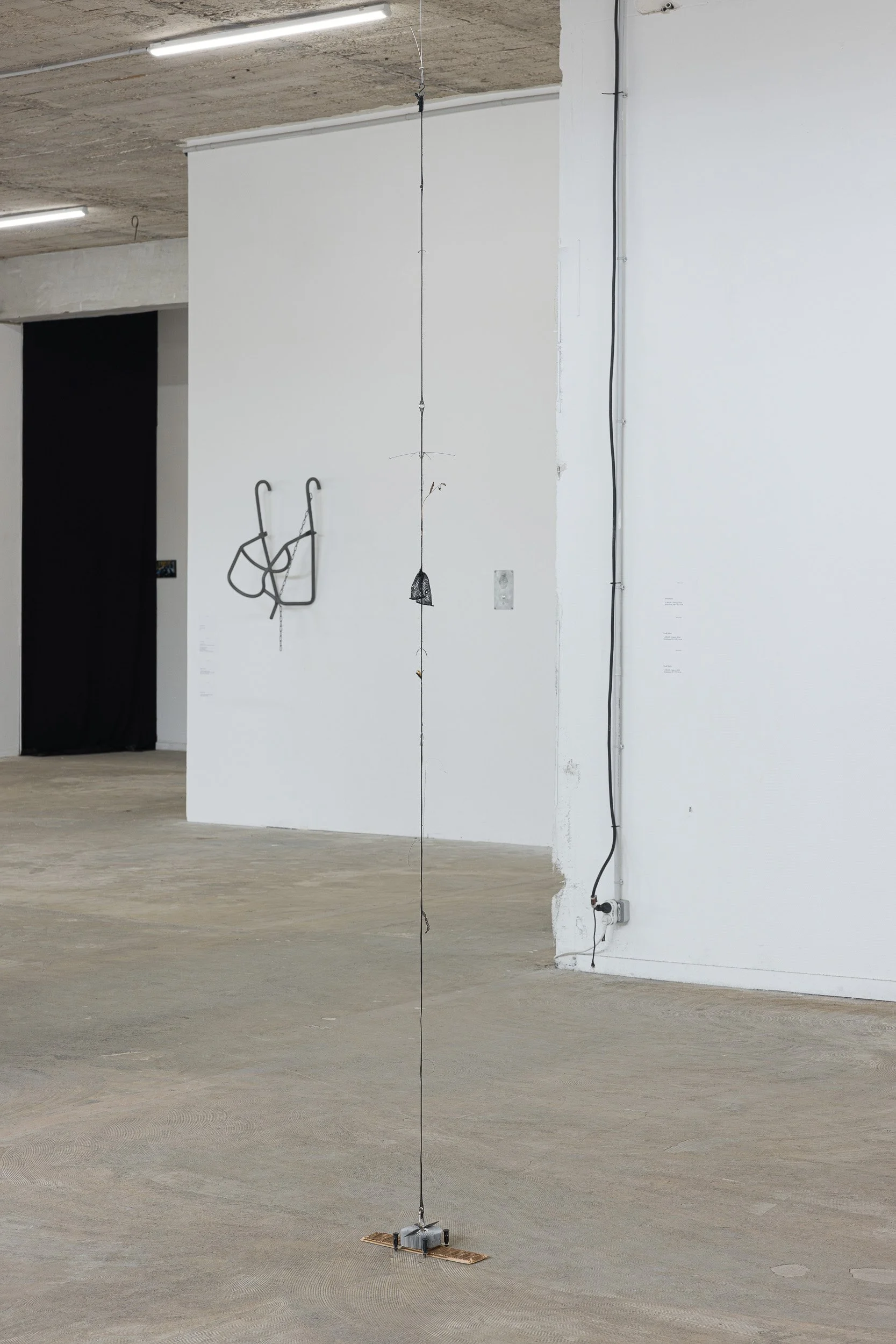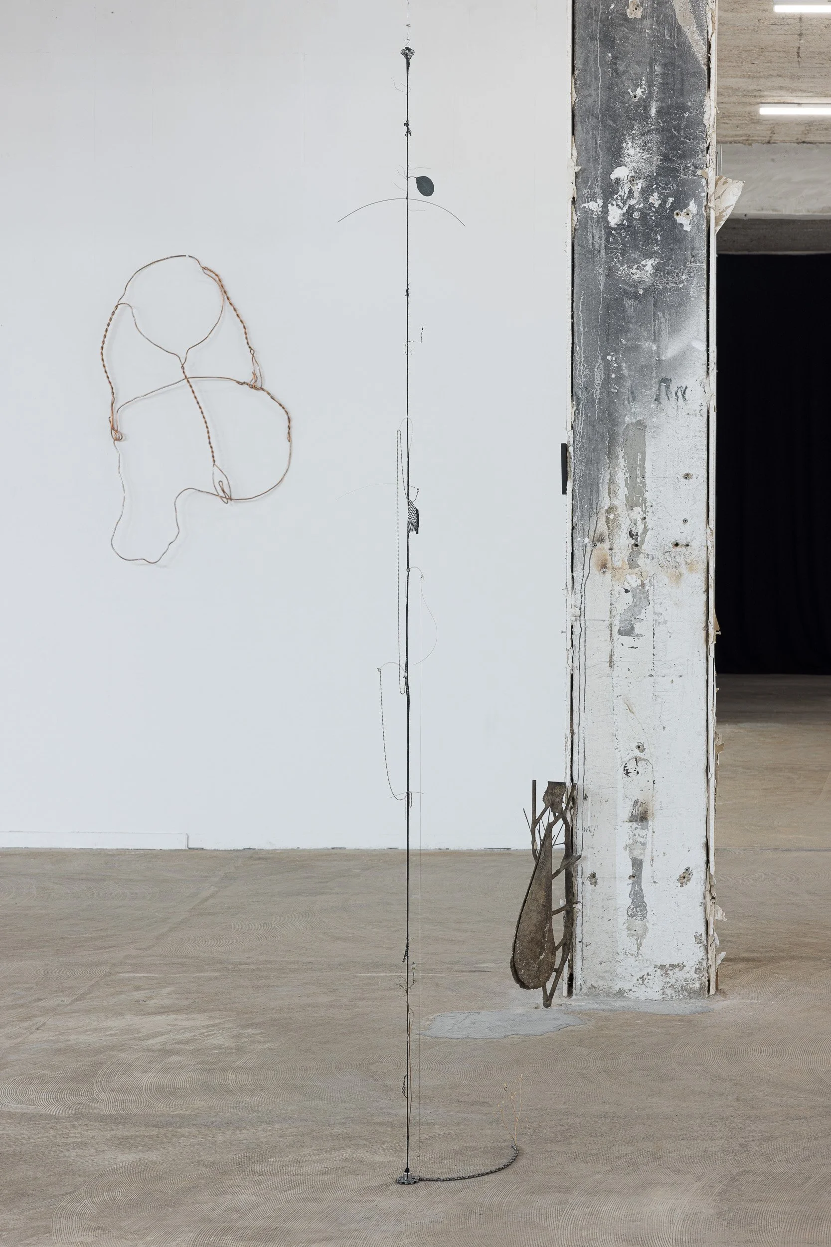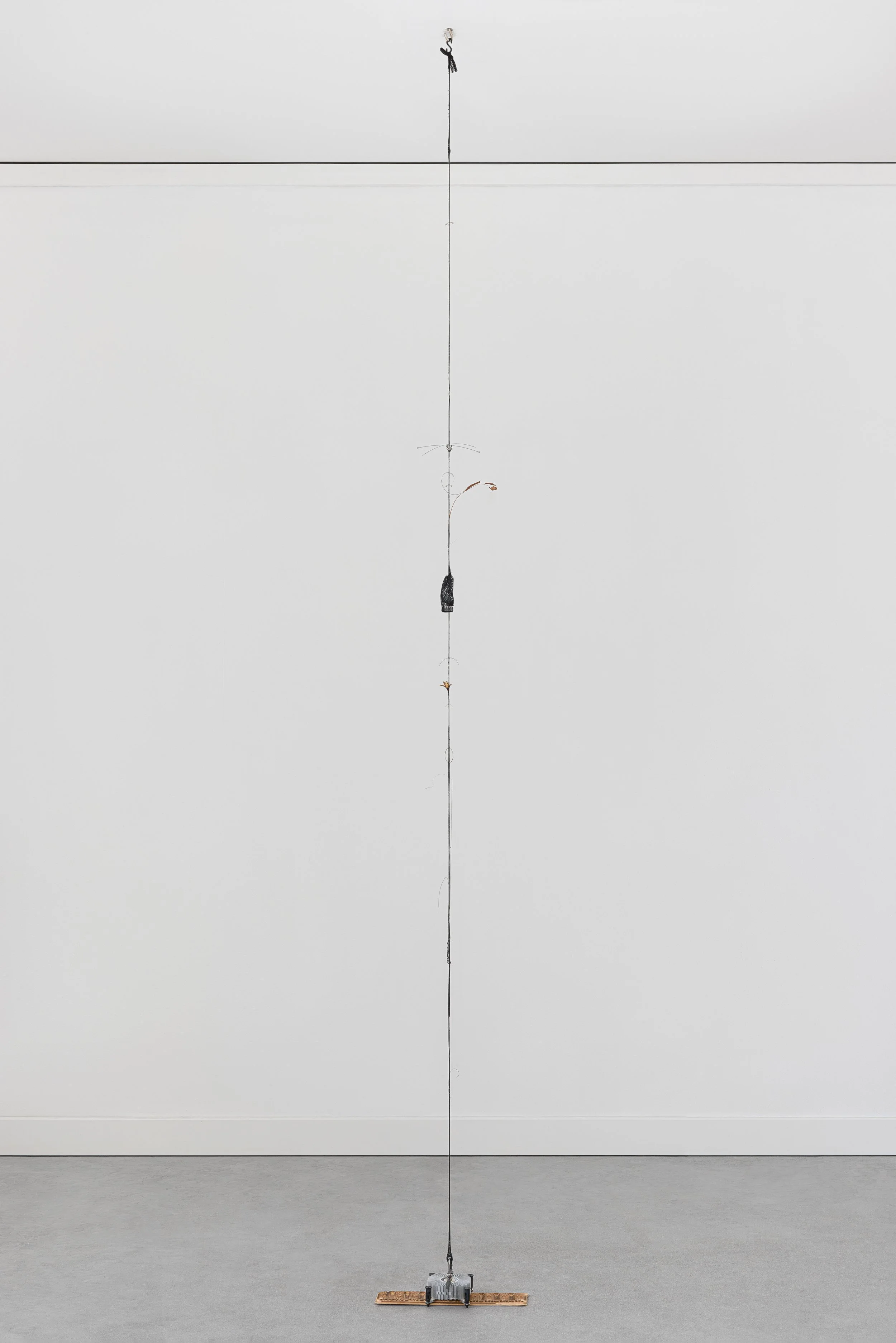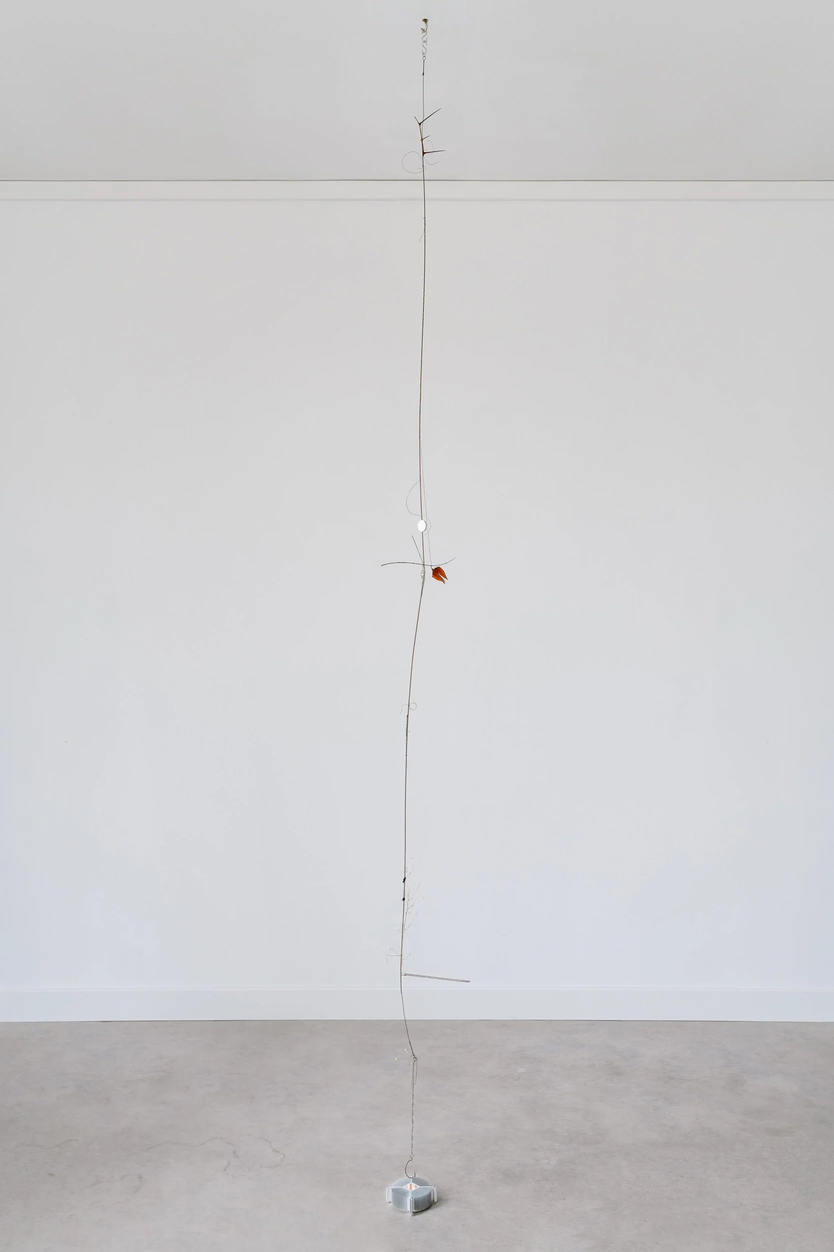 This grouping of sculptures, retitled The Letters of The Litter, is a collection of sculptural essays on agency, political history, and techno-social metabolism. Their intersection aligns with the muted piano of the arrested musician-activist, hunter-gathering logic of algorithmic control, and the knocking communication system used in 19th-century political prisons that reminds us of a cicada’s chirping. The dried plant, rusted piano strings, technological waste and salvaged leftovers are composed vertically, and orchestrated as if a necromantic analysis of accumulated loss. The Letters of The Litter was displayed in a group exhibition minimal, minimal, curated by Yvannoé Kruger, 22nd May, 2025 — 19th July, 2025, POUSH, Aubervilliers