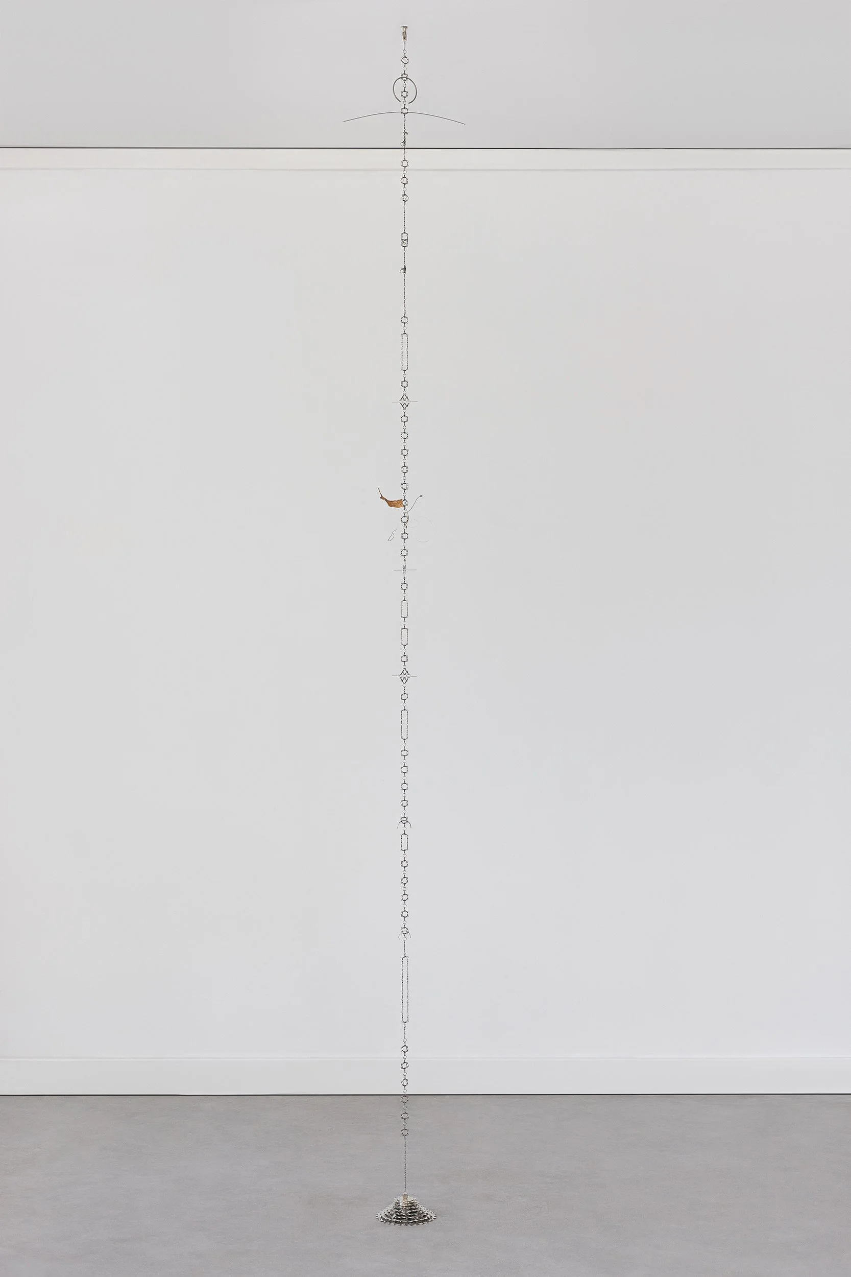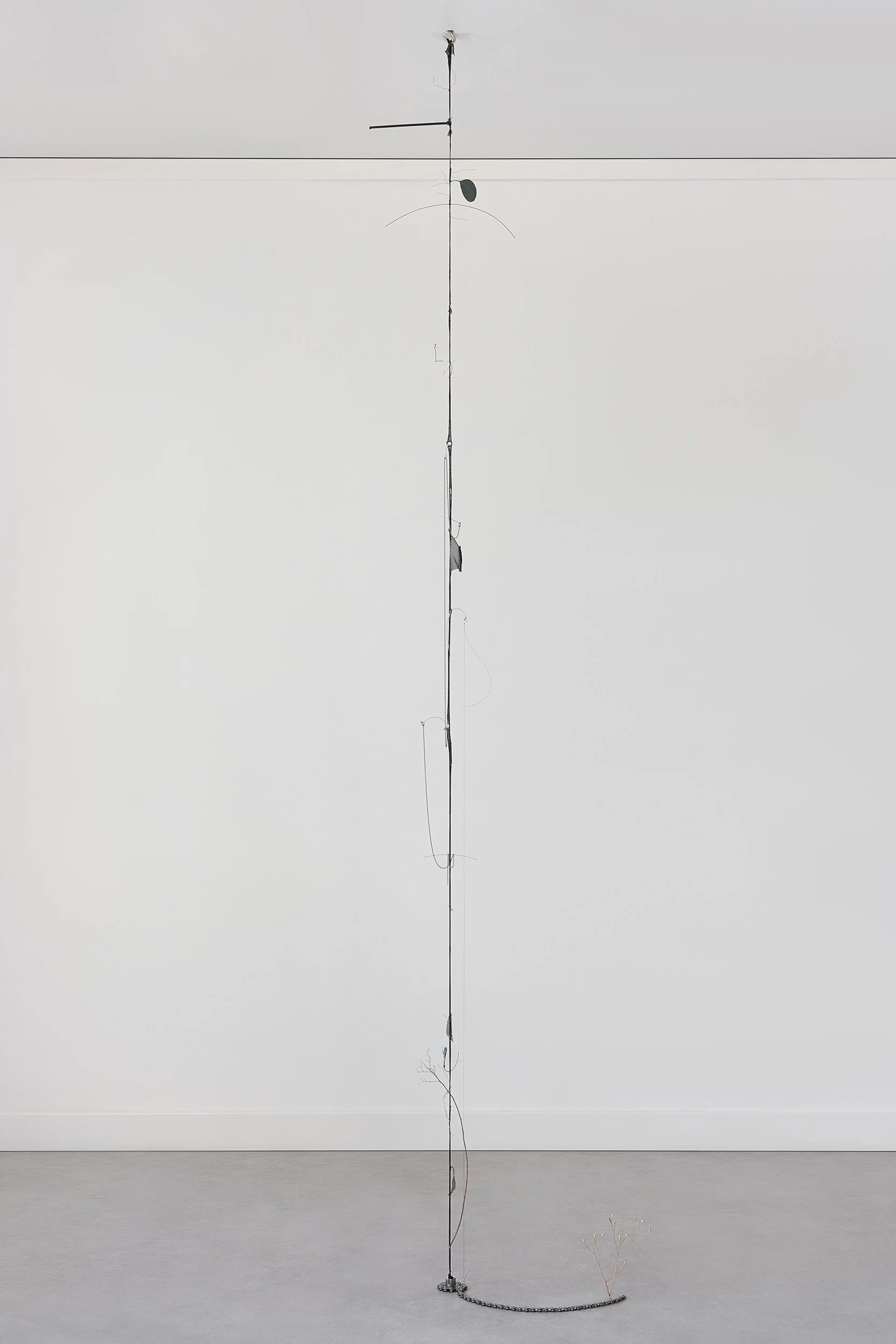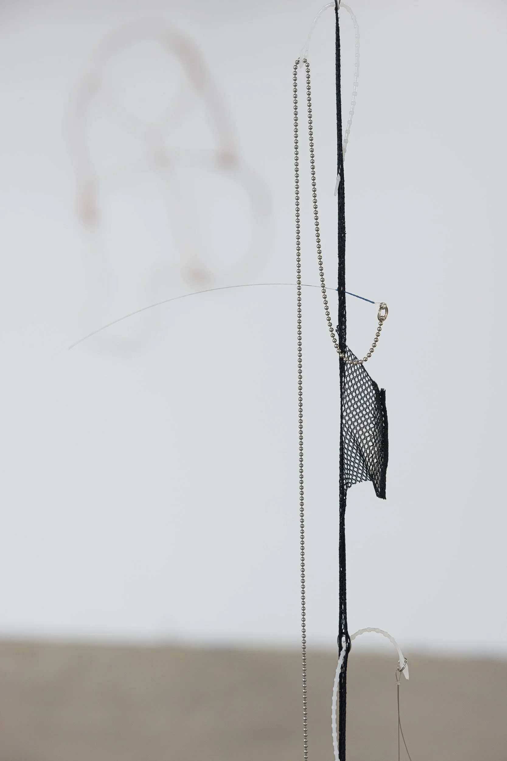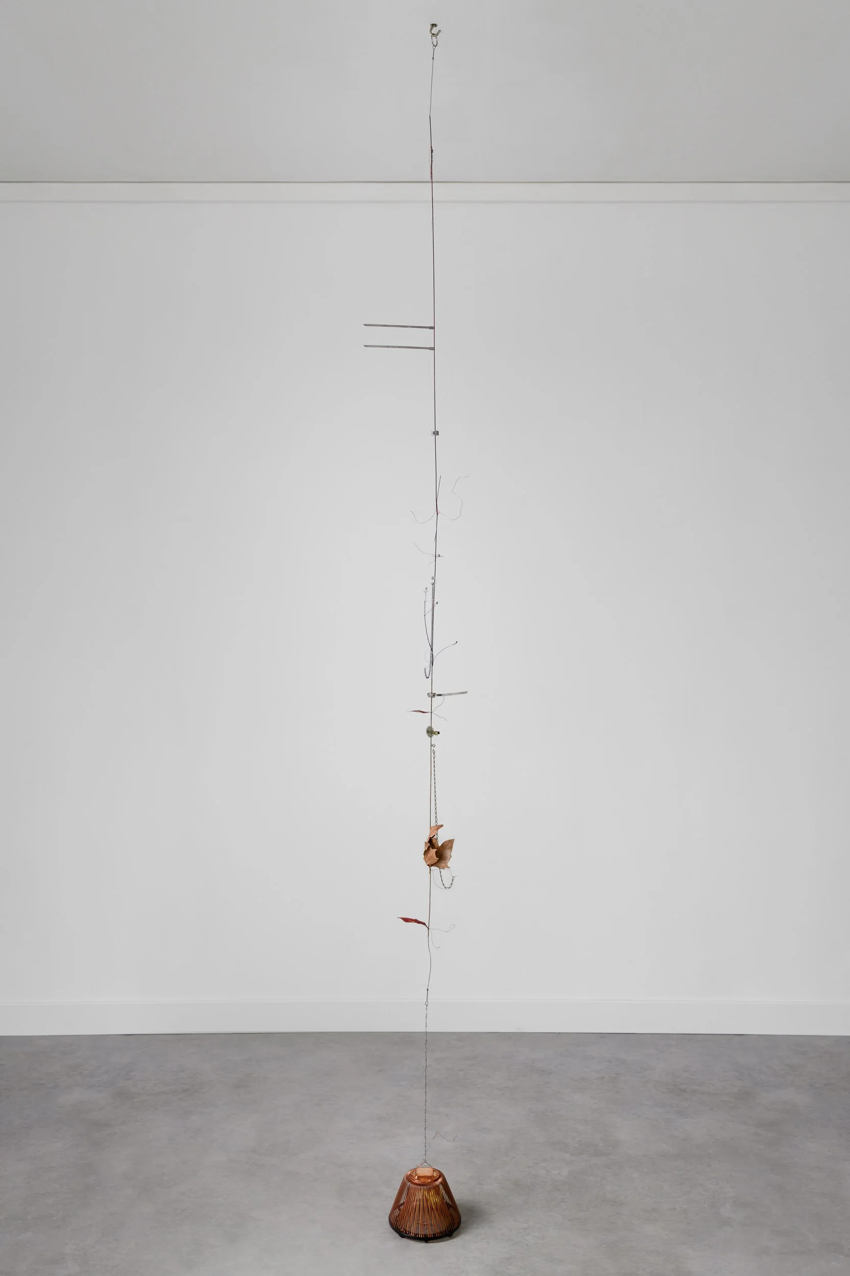 This grouping of sculptures, retitled The Letters of The Litter, is a collection of sculptural essays on agency, political history, and techno-social metabolism. Their intersection aligns with the muted piano of the arrested musician-activist, hunter-gathering logic of algorithmic control, and the knocking communication system used in 19th-century political prisons that reminds us of a cicada’s chirping. The dried plant, rusted piano strings, technological waste and salvaged leftovers are composed vertically, and orchestrated as if a necromantic analysis of accumulated loss. The Letters of The Litter was displayed in a group exhibition minimal, minimal, curated by Yvannoé Kruger, 22nd May, 2025 — 19th July, 2025, POUSH, Aubervilliers